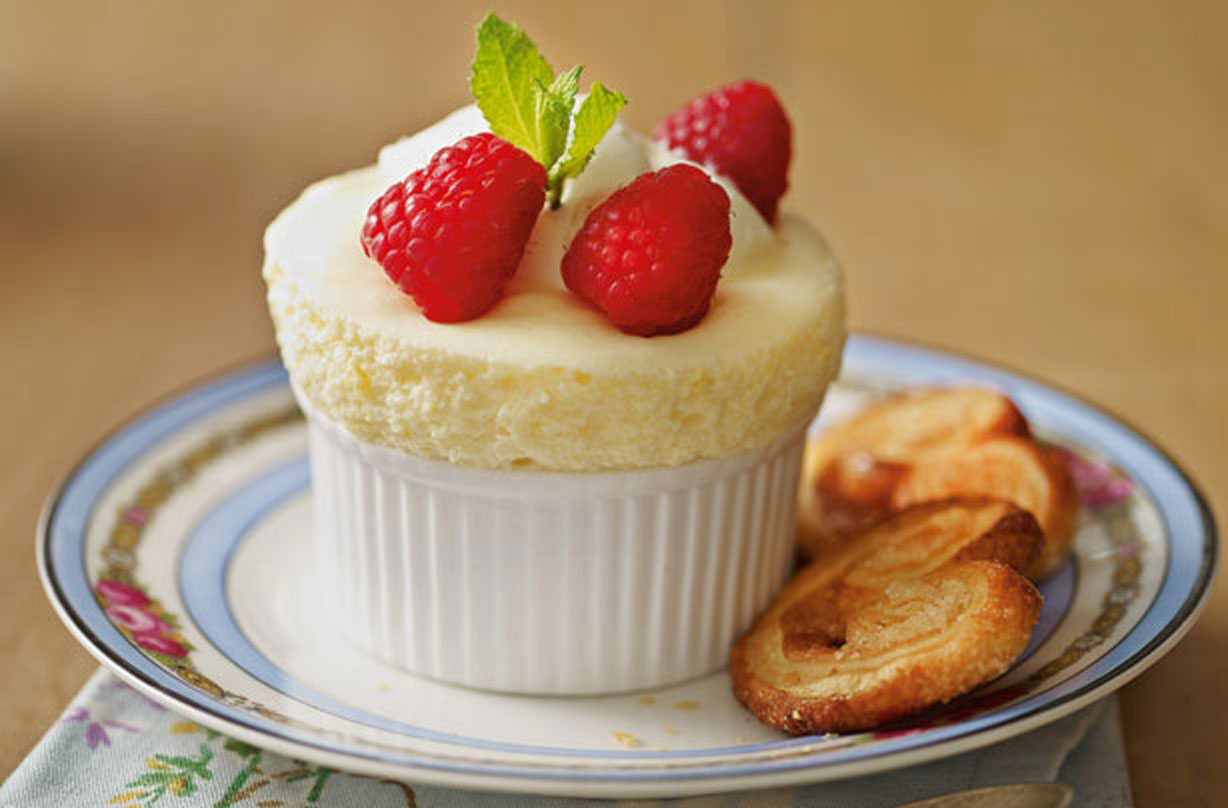 A soufflé is a baked dish with a flavorful base mixed with beaten egg whites. When baked, air bubbles in the egg whites expand, puffing the soufflé up over the top of the dish. The name for this signature French dish is a derivative of the French verb “soufflé,” which means “to blow” or “to inflate.”